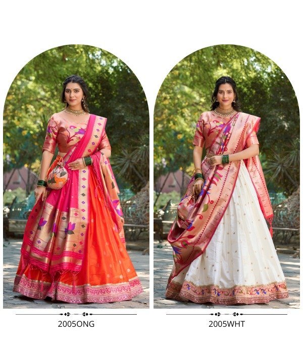 This Jacquard Silk Paithani Lehenga Choli is the perfect classic and contemporary fashion🧡🤍