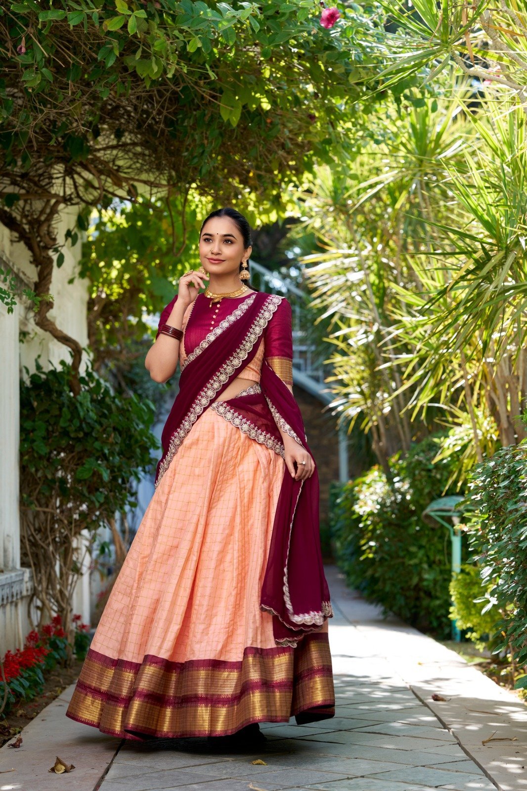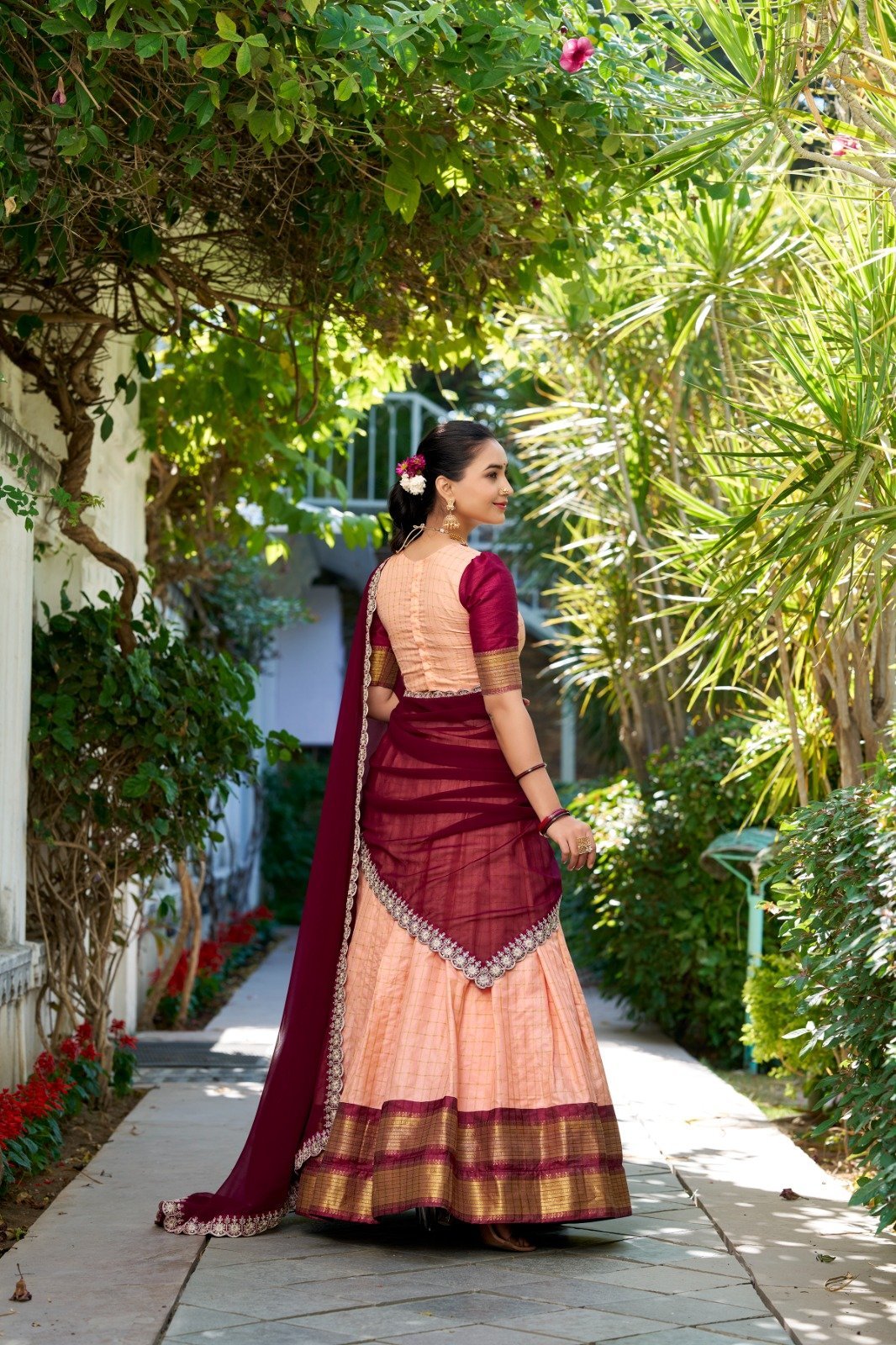 Lehenga work : Chex With Zari Weaving Work